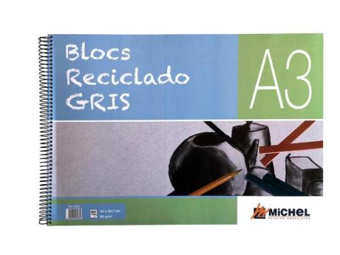 Blocs confeccionados con papel reciclado 100% color gris. Superficie rugosa para bocetar con técnicas secas. Con espiral, 60 hojas.