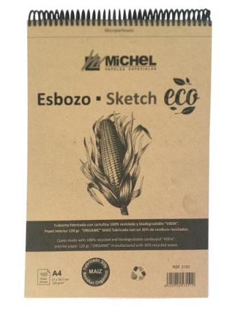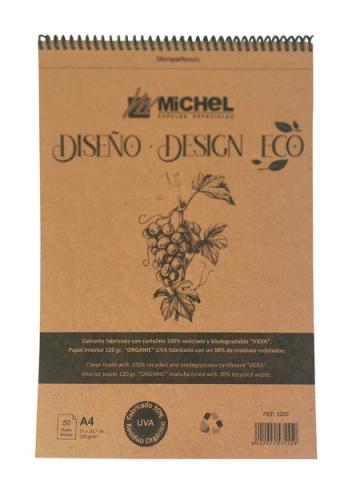Blocs fabricados con papel ecológico "ORGANIC", utilizando un 15% de residuo orgánico procedente de diferentes tipos vegetales. Este residuo es el marca la coloración del papel. En la cubierta de estos blocs se utiliza el cartón Vidia, material 100% reciclado y biodegradable.