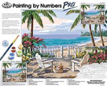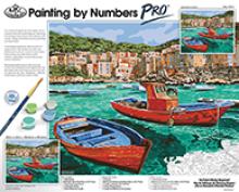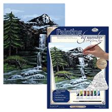 Set con 1 bastidor prepintado 29.7x35.5 cm., 1 paleta de plástico, 1 pincel plano, 1 pincel redondo, 12 botes de pintura acrílica 5 ml. y 1 libro de instrucciones.
