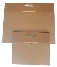 Carpetas fabricadas con cartón micro, troqueladas de tal manera que doblándola por los hendidos queda una carpeta muy resistente y compacta con su asa incorporada.
