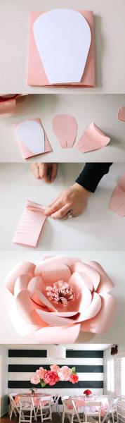 - Flores gigantes decorativas: mezcla y junta colores y tamaños distintos para crear un efecto más impactante en la pared que quieras decorar para una ocasión especial.