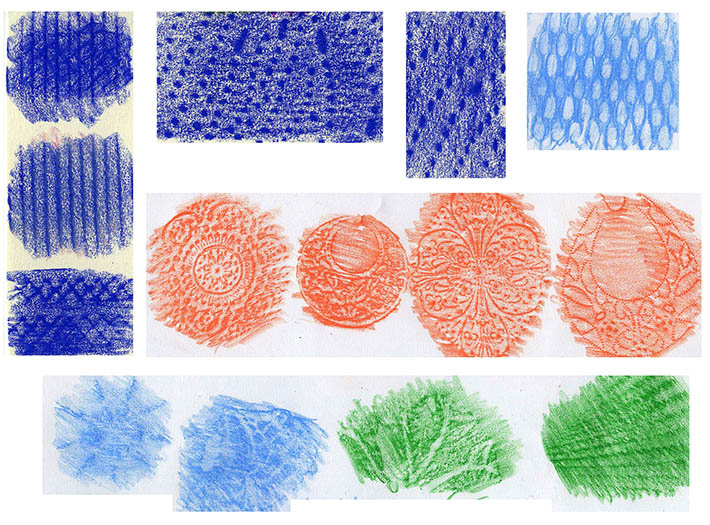 Técnica del frotado: Rallador de cocina, suela de zapato, posavasos... todos estos objetos pueden servir para crear texturas. Se coloca el papel encima de la superficie rugosa y luego se frota con el lápiz, así se marca la textura en el papel y aportas originalidad a tus dibujos.