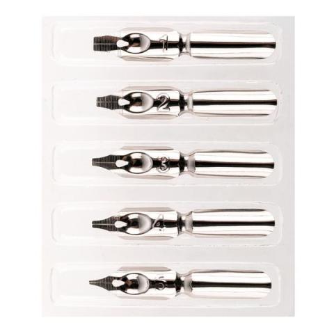 Mango de plástico para plumillas y set de plumillas planas surtidas de diferentes tamaños (3,15-2,05-1,35-0,95-0,75 mm.)