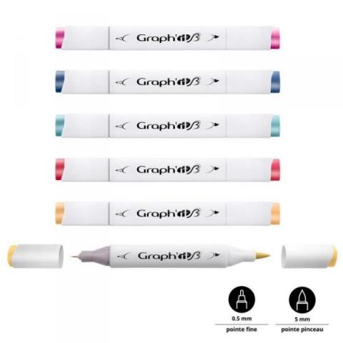 Rotuladores fabricados con tecnología japonesa, con base alcohol. Se presentan con 2 puntas, una en pincel y otra calibrada a 0.5 mm. Especial para ilustración, la tinta es de altísima calidad y el flujo de la misma es generoso y constante. Las tapas cierran herméticamente, lo que da al rotulador una larga vida, una vez usado. Especial para ilustración, manga, lettering, etc.