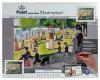 Set con 1 bastidor prepintado 29.7x35.5 cm., 1 paleta de plástico, 1 pincel plano, 1 pincel redondo, 12 botes de pintura acrílica 5 ml. y 1 libro de instrucciones.